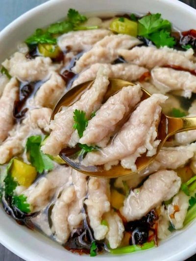 说到福鼎,可以算是滔滔不绝。其中一个话题便是美食。小笼包、蜜汁鸡翅、鱼丸、溜溜......数不胜数。其中,最令人垂涎三尺的就是福鼎肉片。一碗肉片可是色香味俱全,粉嫩粉嫩的肉片在汤水中浸泡着,配上绿油油的香菜,看着都要流口水,更别说吃了。香喷喷的味道吸引着肚子中的馋虫,想吃吗?用大汤勺盛一些肉片,装进碗里,再加上配料。一碗热腾腾的肉片就完成了。先尝一口汤。唔~味道好极了!不浓不淡,入口是一种很爽滑的口感。再试一试肉片,肉片白中透着粉,吃一口非常有嚼劲,满满一口肉味,还很鲜嫩,吃完一口停不了再来一口。狼吞虎咽过后,碗便跟洗过了似的,一干二净。